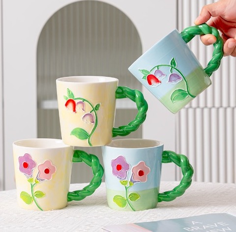 크리에이 티브 손으로 그린 계곡의 백합 세라믹 머그 양각 나팔꽃 우유 컵 대용량 아침 식사 컵 커피 컵