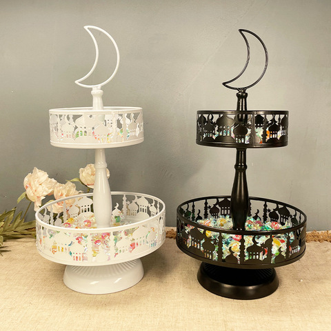 디저트 테이블 케이크 스탠드 2 단 라마단 철 성 트레이 웨딩 휴일 장식 캔디 스탠드
